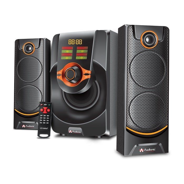 MEGA M-45 is the new king of MEGA series equipped with a 2.1 channel high sound quality speakers accompanied by FM radio, remote control, and SD/MMC/USB playing option for an unmatachable experience. Features: Bluetooth: Easy to pair with any Bluetooth enabled device such i.e. ios, android or any other Bluetooth support device. Remote Control: It offers full function remote control for adjusting/changing output media and levels. USB Supported: Just Plug in USB and play MP3 files directly. Built-in FM Radio: Never miss your favorite program MEGA-45 offers built-in FM radio anytime anywhere. SD CARD: Just plug in your SD Card and enjoy your favourite music